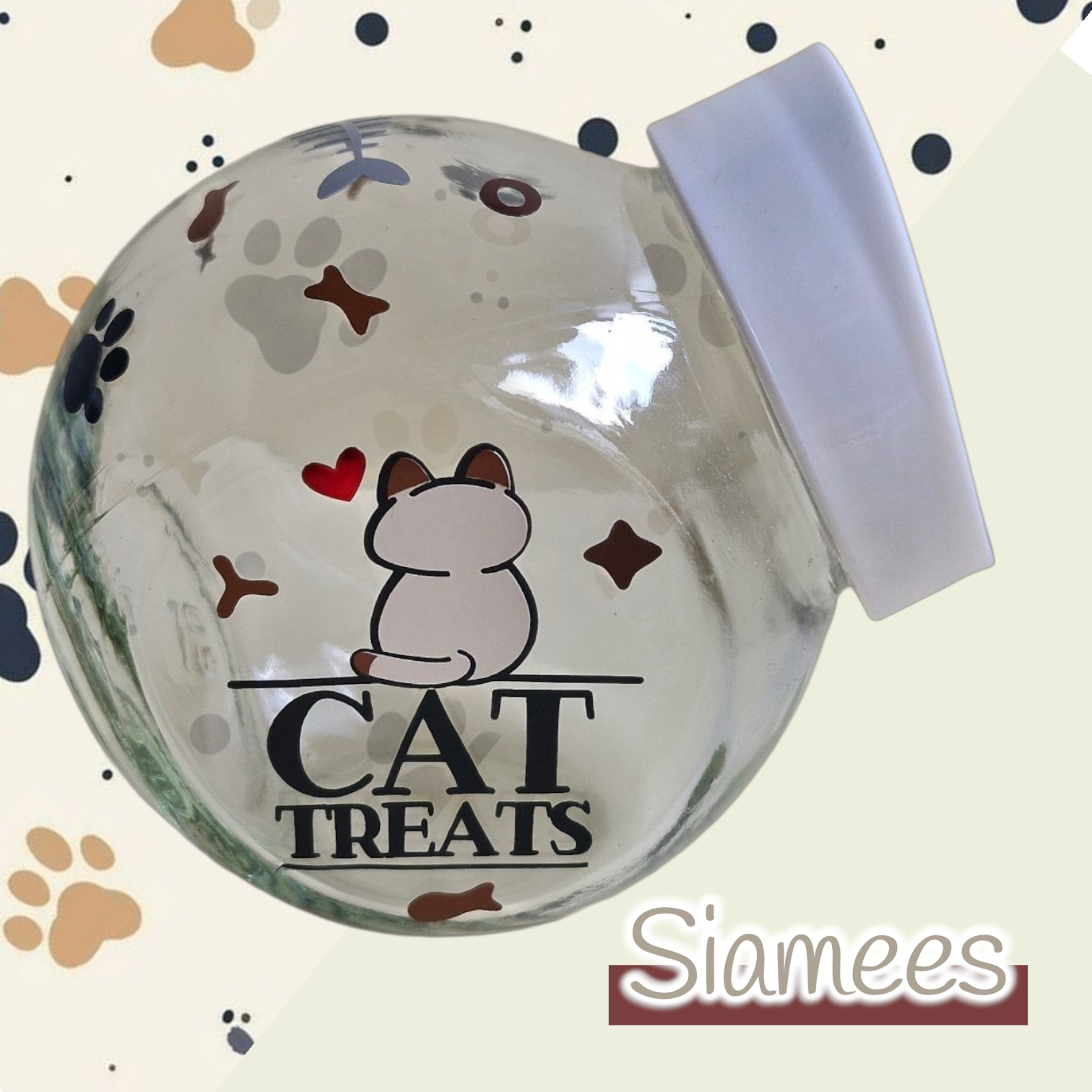 Een snoeppotje, maar dan speciaal voor de kat en dat is nog niet alles, want je kunt geheel zonder extra kosten de naam van je kat op het potje laten zetten! Op ieder potje staat ook nog eens een ander soort kat afgebeeld, dus kun je diegene kiezen die het meest lijkt op jouw eigen huispanter ❤️🐾